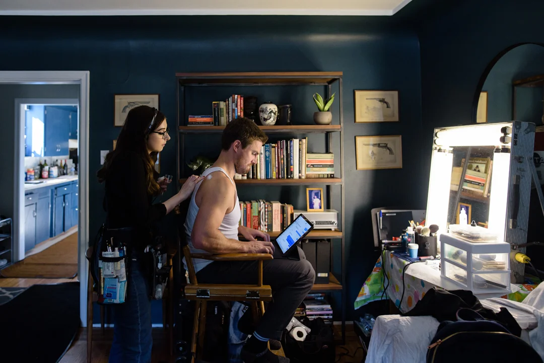 Stephen Amell on the set of Mi Madre, My Father. Photo by Lisa Wilton